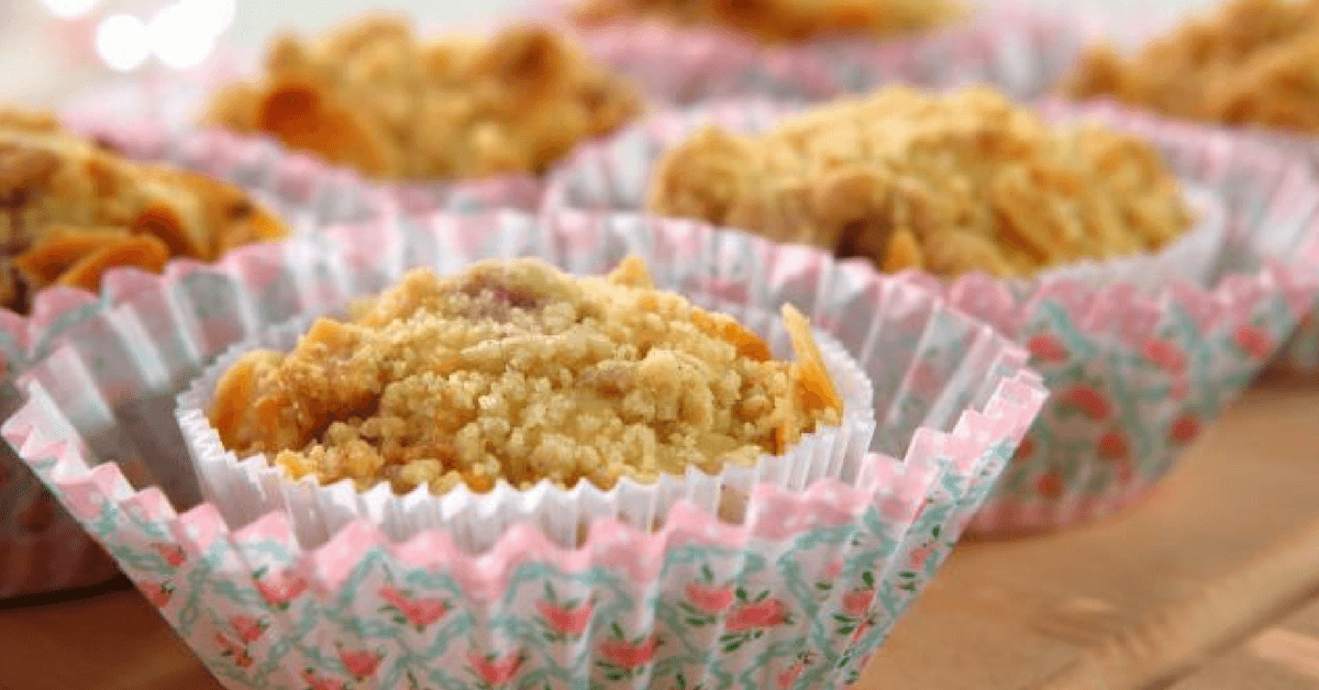 - Incorporar 100g de almendras cortadas groseramente. Cubrir la superficie de los muffins en crudo. Llevar al horno y cocinar a 180 °C durante 18 minutos. Retirar y servir.