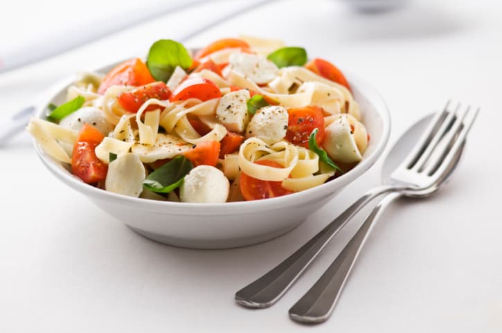 Cocina 500 gramos de tu pasta favorita. Mientras tanto, mezcla 5 tomates medianos picados, 2 cebolletas picadas, 1 cucharada de cebolla roja picada, 1 diente de ajo finamente picado, 1 puñado de albahaca picada, 1 cucharada de aceite de oliva, 3 cucharaditas de vinagre balsámico y 1/3 taza de queso parmesano rallado. Deja reposar hasta que la pasta esté lista. Mezcla la pasta con los vegetales, sazona con sal y pimienta al gusto, y sirve la ensalada de pasta italiana.