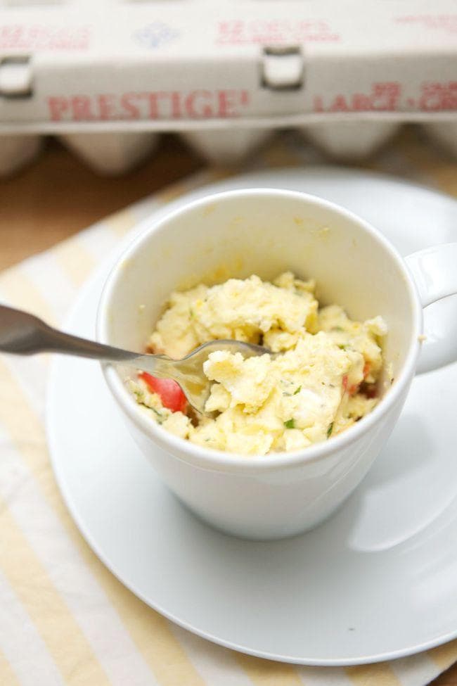 Vuelve a llevar la preparación al microondas durante un minuto más, hasta que el huevo esté firme. Sirve inmediatamente.