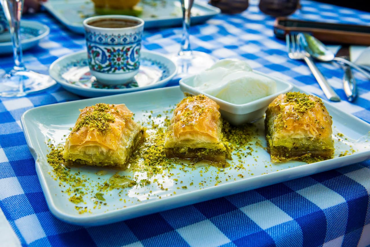 Lo se, aún faltan muchos platos por mencionar pero no puedo terminar sin mencionar el baklava. No puedes dejar de comerlo, es un postre delicioso y bastante complejo de preparar. Por su complejidad en la preparación, encontrar un buen baklava es un tesoro así que no dejes de comerlo. Existen muchas variedades algunos con avellanas y almendras pero mi favorito es con pistachio. Tienes que comerlo acompañado del café turco o té turco.