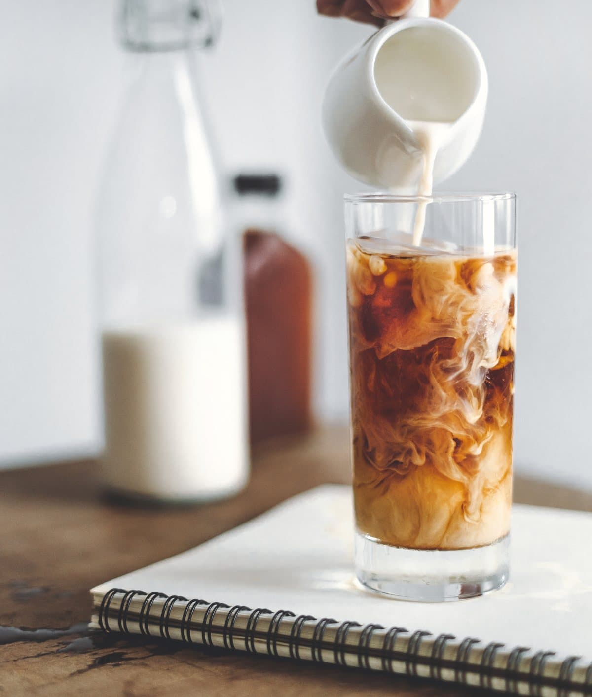 - Añade la leche azucarada y deja que se mezcle sólo con el movimiento de la caída (se creará un efecto marmoleado).
