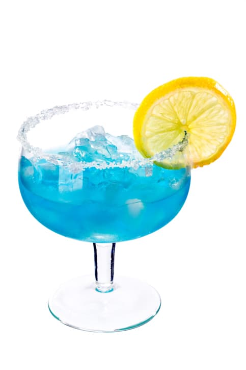 Humedece el borde del vaso con jugo de lima y apóyalo sobre un plato con sal. Mezcla el tequila, el blue curacao y el resto del jugo de lima con cubos de hielo. Agita bien y sirve en el vaso decorado.