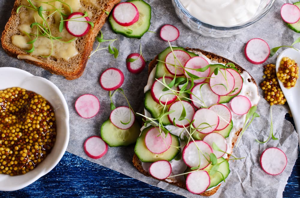 En un envase mezcla la Duke's Mayonnaise con la cebolla picada finamente, el eneldo y el jugo de limón. Sazona al gusto con sal y pimienta. Coloca en cada rebanada de pan la mezcla de Duke's Mayonnaise que acabas de preparar. Coloca las rebanadas de pepino y rábano, ordenándolas en filas alternas. Cubre tu creación con la otra rebanada de pan y presiónalo suavemente. Corta con cuidado cada sándwich por la mitad, longitudinalmente o diagonalmente y sírvelo, ¡buen provecho!