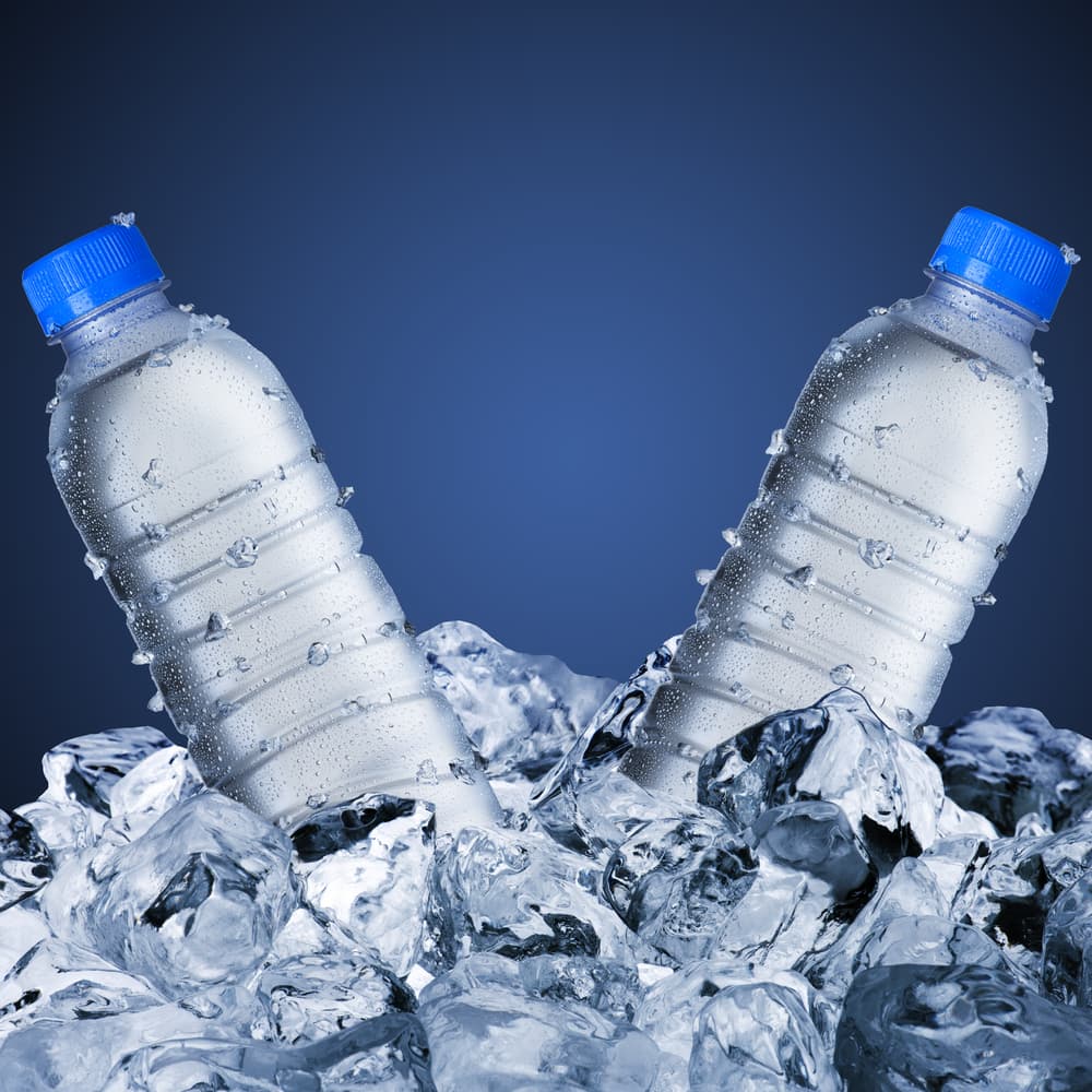 Pequeñas botellas, latas o jugos en caja pueden mantenerse fríos en tu mesa, si los colocas dentro de un molde de horno lleno de hielo.