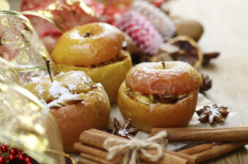 Si, por otro lado, vives en el hemisferio norte o dónde vas a festejar la Navidad hace frío, puedes servir unas sencillas y reconfortantes manzanas asadas con miel y canela.