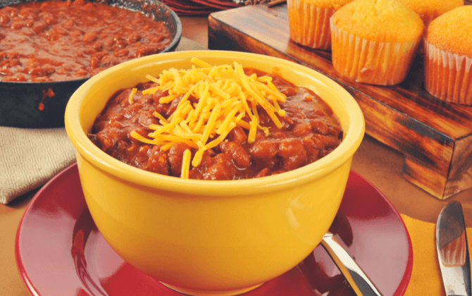 Cocina a fuego alto durante 3 horas. Luego, agrega la masa de pan de maíz, y cocina por una hora más. Para servir, cubre el plato con queso cheddar.