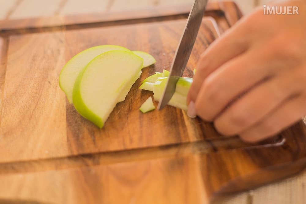 Corta la manzana con o sin cáscara en trozos muy pequeños.