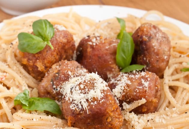 Podemos acompañar las albóndigas con arroz o pasta. Yo por mi parte prefiero las albóndigas acompañadas con spaguetti. Al servir, espolvorea con más queso parmesano y perejil, si así lo deseas.