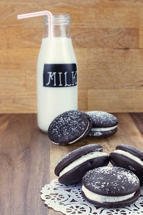 Coloca la preparación en una manga pastelera y empieza a rellenar las delicias de chocolate que habías realizado anteriormente. Añade una buena cantidad de relleno de malvaviscos para que los alfajores queden tentadores.