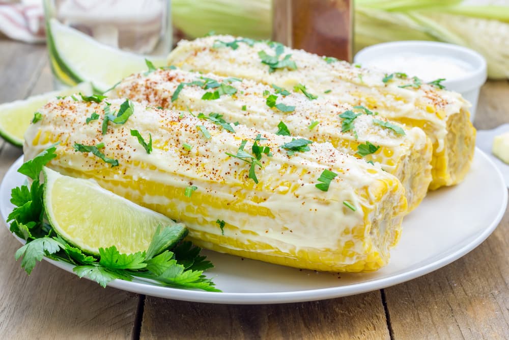 Precalienta el horno a 180º C. Cubre cada mazorca con una capa fina de mantequilla, y luego coloca el queso parmesano por arriba.