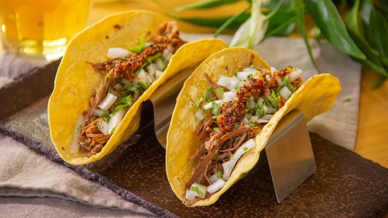 - Sirve en tortillas de maíz y acompaña con cebolla, cilantro, limón y salsa picante.