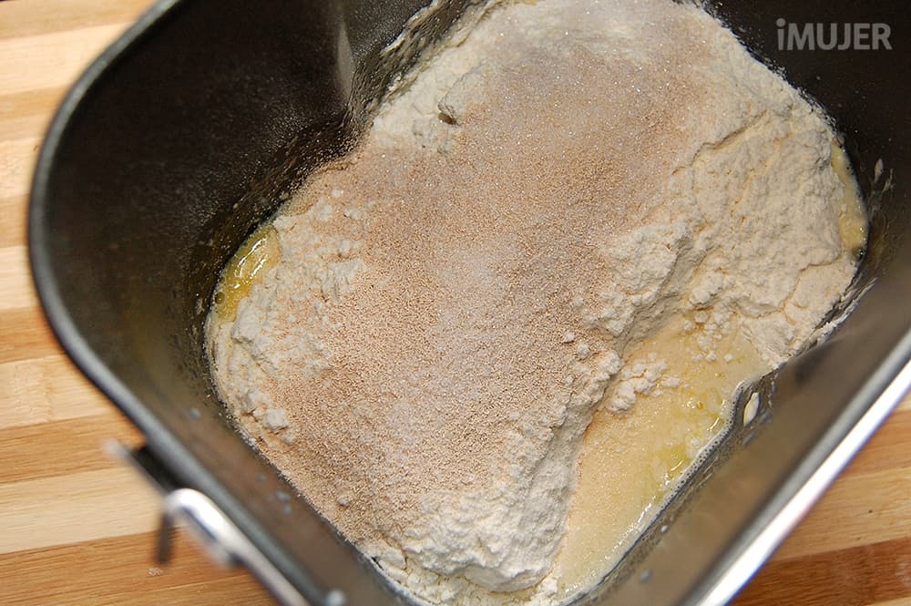 En un recipiente amplio combina la harina, levadura, azúcar y sal.