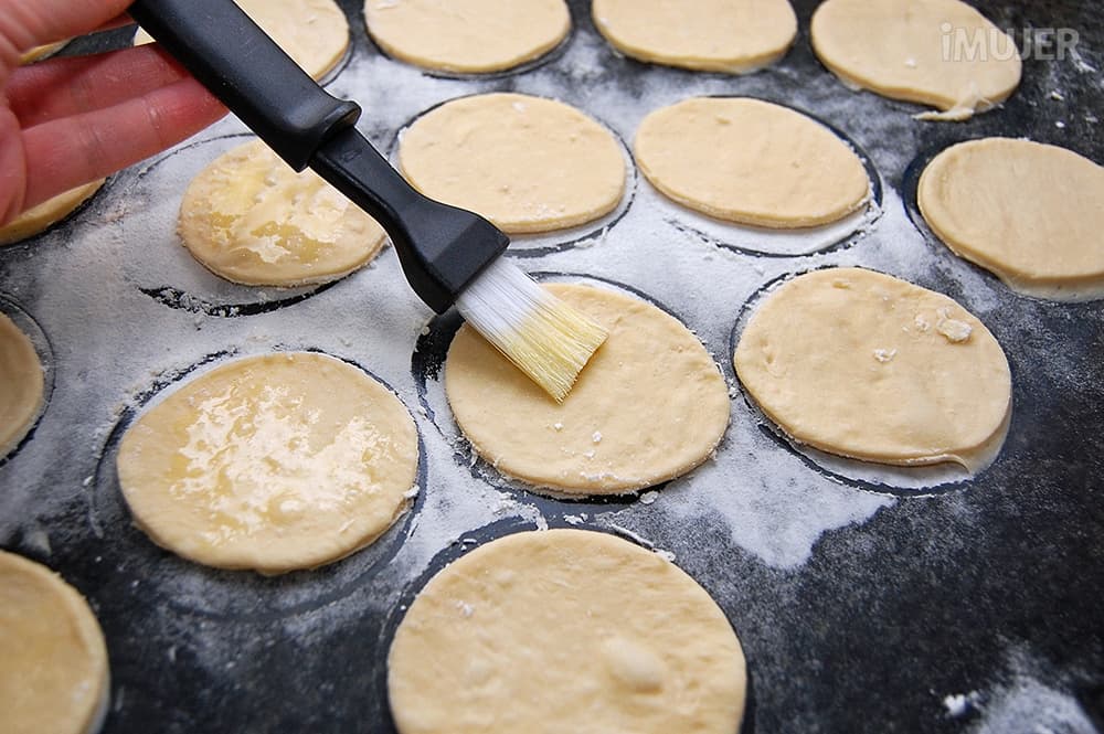 Degasifica la masa, estira y y corta con un cortante redondo.