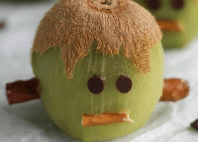 ¿Quién iba a decir que un simple kiwi podía transformarse en el mejor Frankestein comestible para la noche de brujas?