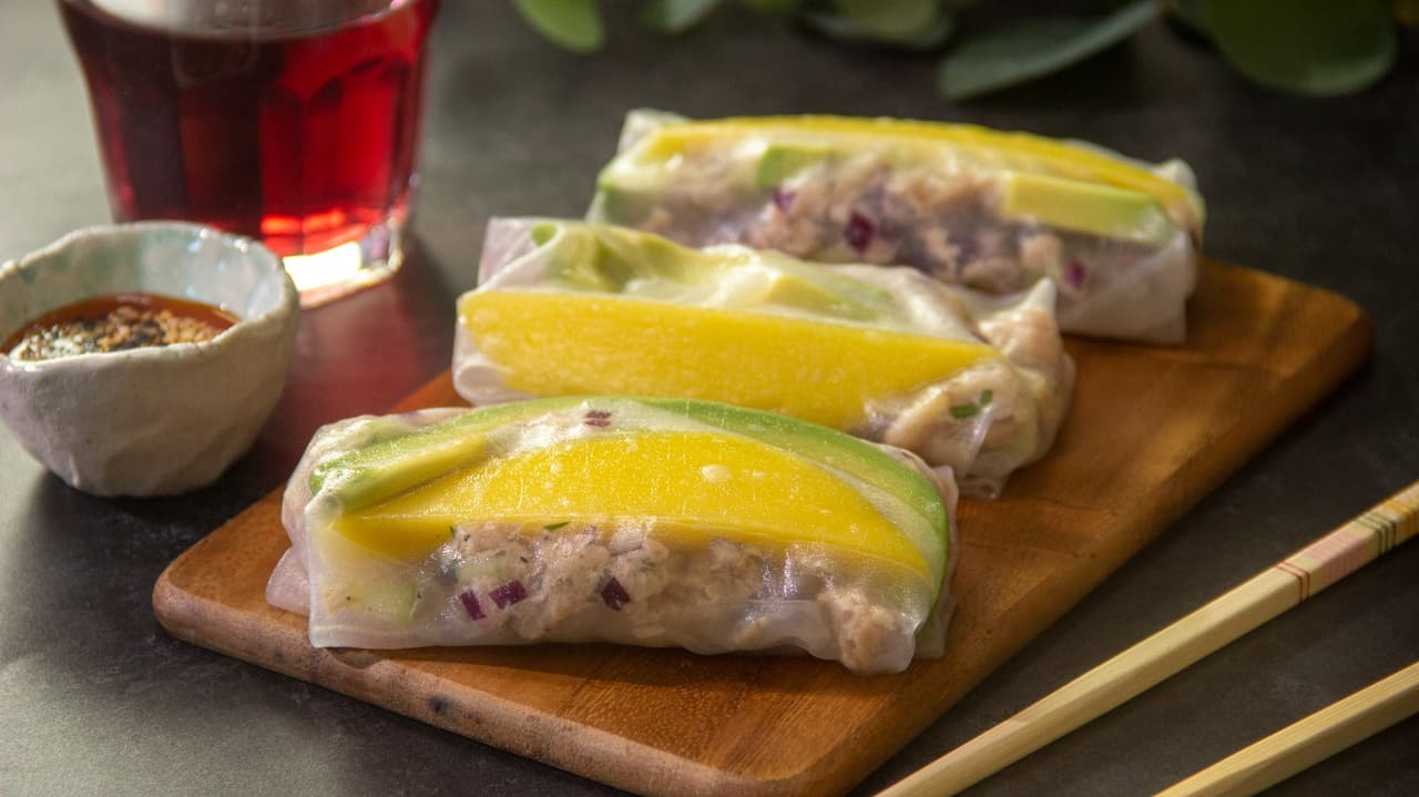 Claro que también tenemos opciones de botanas más ligeras. Para muestra, estos rollitos de atún que son el balance perfecto entre sabor, frescura y nutrición. Para transformar este platillo en uno vegano, cambia el atún por la misma cantidad de garbanzos cocidos y ligeramente machacados.