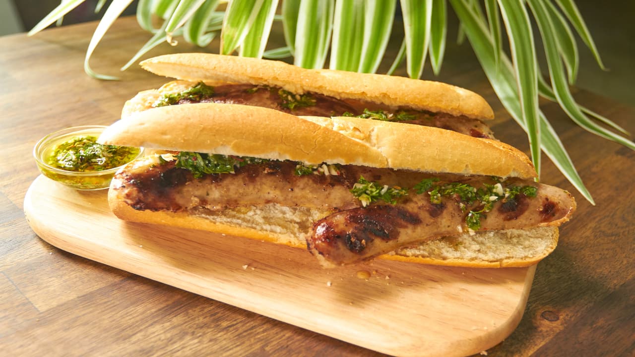 Esta es una versión deliciosa del choripán argentino tradicional. ¿Qué lo hace tan especial? Por supuesto que el chimichurri, una salsa ácida, pero salada y herbal, que querrás comer a cucharadas.