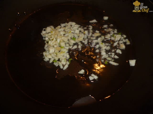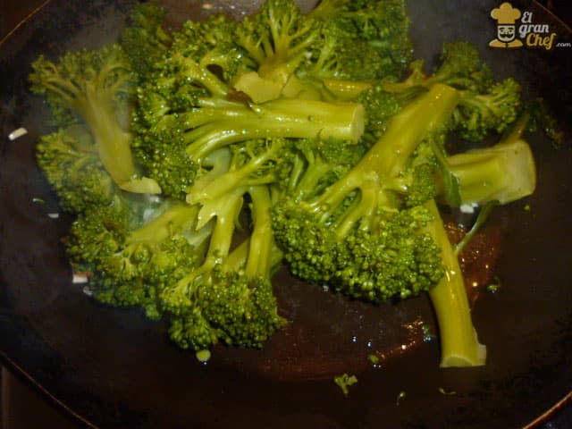 En una sartén colocamos el aceite, el ajo y el brócoli porcionado.