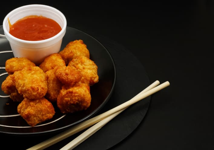 Canapés fáciles para Navidad: Bolitas chinas de pollo con salsa agridulce
