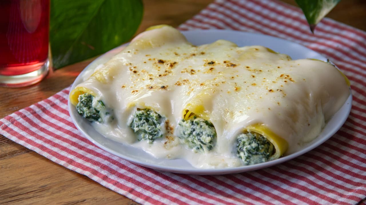 Aprende a preparar los clásicos canelones rellenos de espinaca italianos y consiente a la familia con un platillo reconfortante, lleno de queso y una deliciosa salsa.