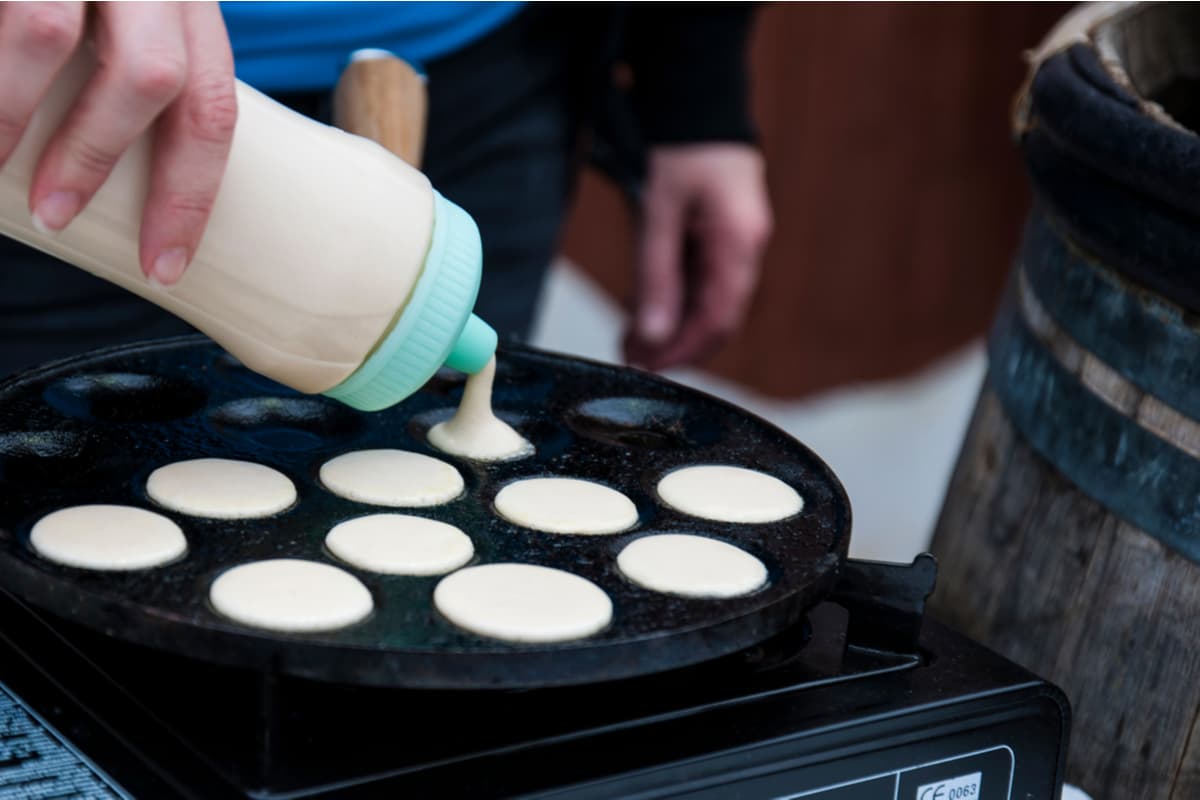 5. Vierte la mezcla en la sartén y forma círculos de dos centímetros de diámetro, aproximadamente. Cocina durante uno o dos minutos por cada lado.