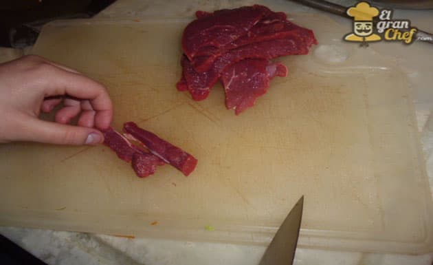 Cortamos las verduras en tiras; hablando en vocabulario gastronómico, hacemos el corte juliana.