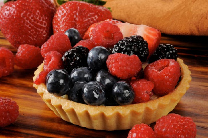 Dispone las frutas creativamente sobre el relleno de crema y cubriendo totalmente la corteza horneada que nos sirve de base.