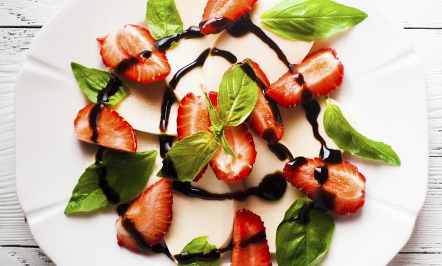 Aderezar fresas con vinagre balsámico puede sonar raro, ¡pero esta combinación agridulce es deliciosa! Esta combinación queda aún mejor si se vierte sobre helado de vainilla como postre después de la cena, por no mencionar que es mucho más saludable que verter salsa de chocolate sobre las fresas.