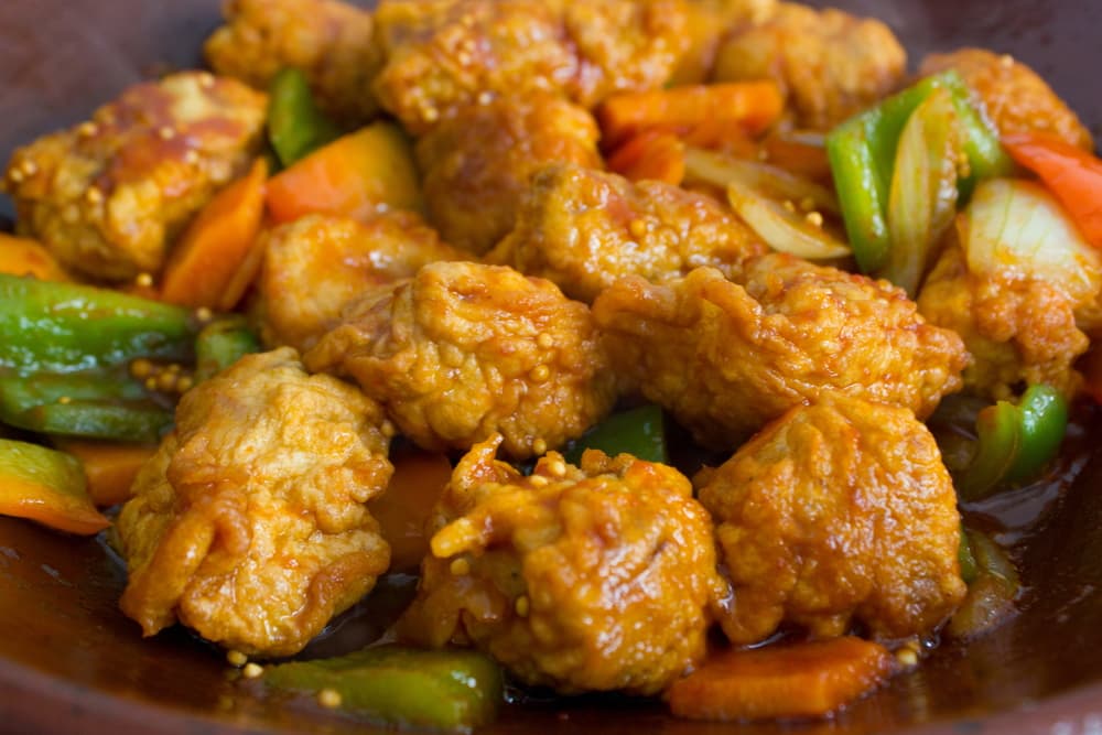 Aunque la estrella del show es la salsa, no descuides al cerdo. Después de cubrirlo con masa y freírlo, debes asegurarte de que está bien crujiente. Así no perderá la forma y textura al remojarse en la salsa durante un buen rato. Aunque con lo rico que sabe, es probable que no se quede en tu plato durante mucho tiempo.