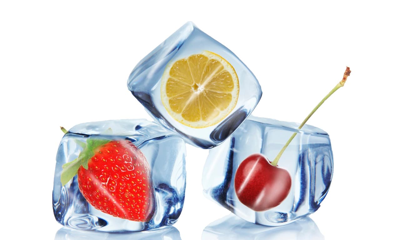 ¡Más fácil y práctico, imposible! En una bandeja para hacer cubos de hielo, coloca una baya de frutas o un trozo de ellas y llénalas con agua. Las cerezas, fresas y moras son las más usuales pero también puedes colocar pequeñas rodajas de naranja, limón o la fruta que más te guste.