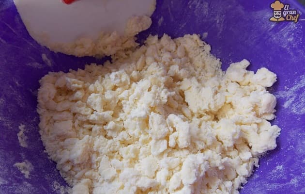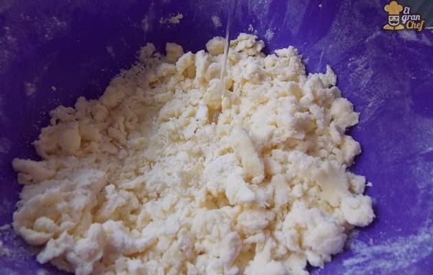 Ir agregándole a la masa el agua bien fría de a chorritos hasta que el arenado se una perfectamente.