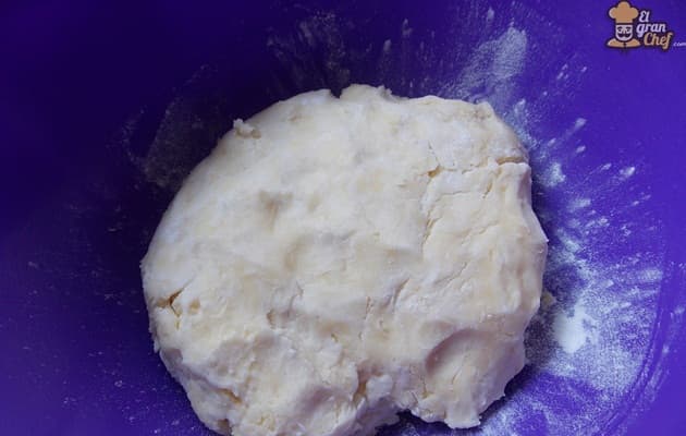 Finalmente así queda la masa, un bollo tierno y listo para ir a la nevera durante media hora hasta que la mantequilla se enfríe y se pueda trabajar mejor luego.