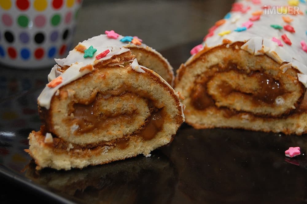 El pionono o arrollado, como lo dice su nombre, generalmente, se presenta arrollado, y en esta oportunidad yo lo rellené con dulce de leche.