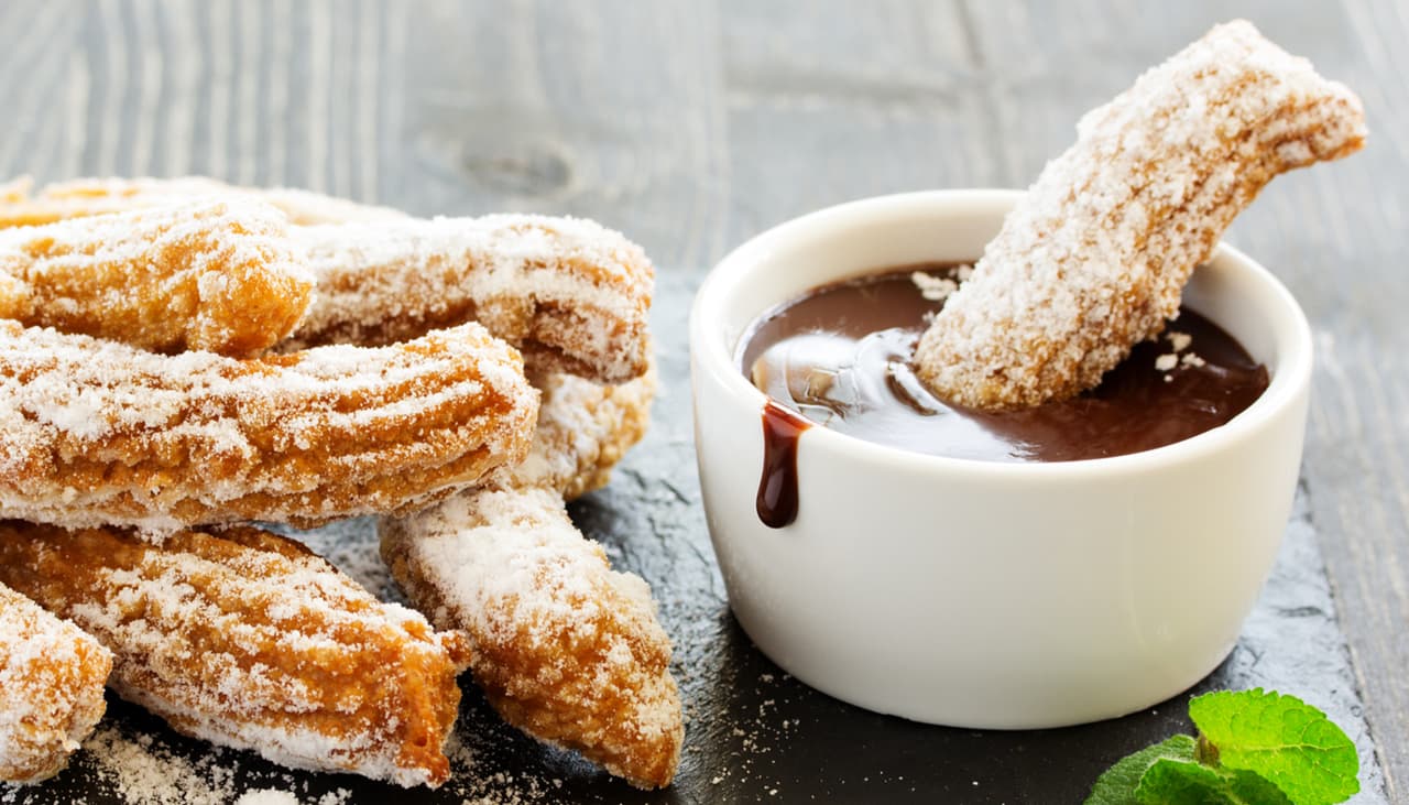 Originarios de España, los churros son una masa frita en forma de bastón que se espolvorea con azúcar o canela y que a menudo, acompañan un chocolate caliente. Desde su aparición se han convertido en un postre popular no solo en el viejo continente, sino también en América Latina y en gran parte de los Estados Unidos.