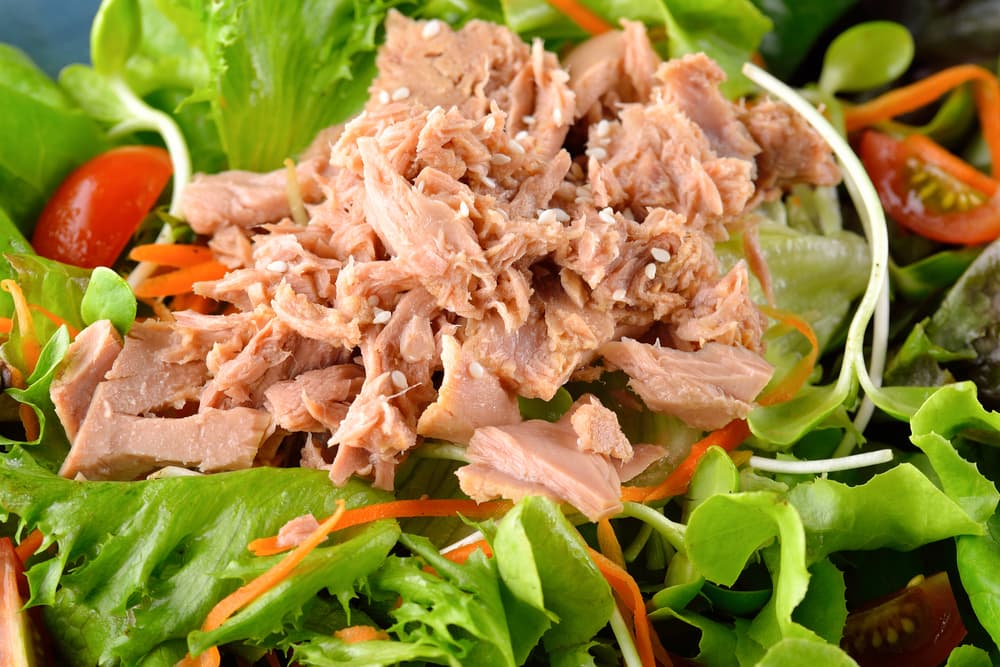 Añadir un trozo de atún blanco a la ensalada es incorporar proteínas y niacina la cual es muy saludable para el corazón. La niacina también incrementa los valores del colesterol bueno y disminuye los triglicéridos.