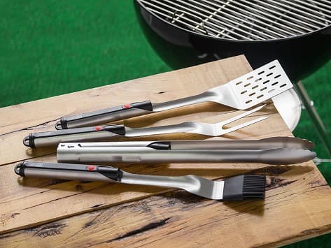 Con estas herramientas no tendrás problemas para realizar una barbacoa a cualquier hora, porque todos los utensilios cuentan con una luz de LED incorporada que es resistente al agua. Además se mantienen en un perfecto orden gracias a un delantal inteligente que cuenta con imanes que aseguran que siempre tendrás todo a mano y nada se caerá.