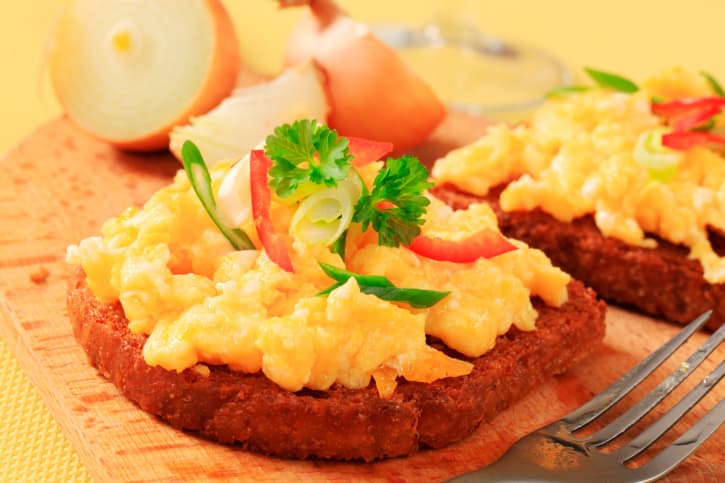 Sumamente fáciles de hacer y con múltiples posibilidades. Echamos varios huevos en una sartén antiadherente, incorporamos un poco de leche y mezclamos. Revolvemos de tanto en tanto, hasta que los huevos se espesen. Añadimos sal y pimienta al gusto. También podemos condimentar los huevos revueltos con jalapeños picados o tomates, e incluso sumar queso y también salsa.