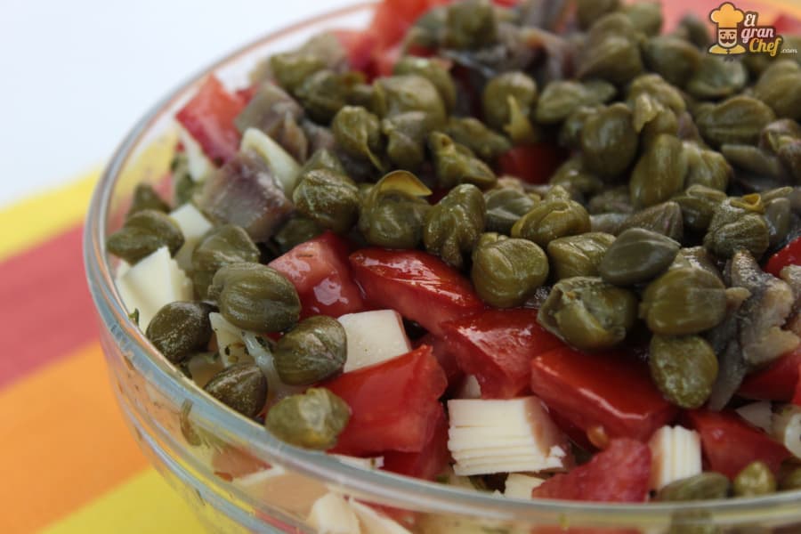 Las ensaladas suelen ser meros acompañantes de las comidas, pero en los días de mucho calor o cuando queremos comer algo fresco y fácil de preparar, pueden convertirse en un plato principal en sí mismas, sobre todo cuando son completas como esta rica y suculenta ensalada de macarrones con anchoas, tomates y alcaparras.