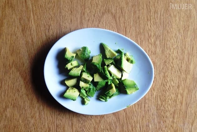 Pelar la palta, retirar el carozo y cortarla en cubos medianos.