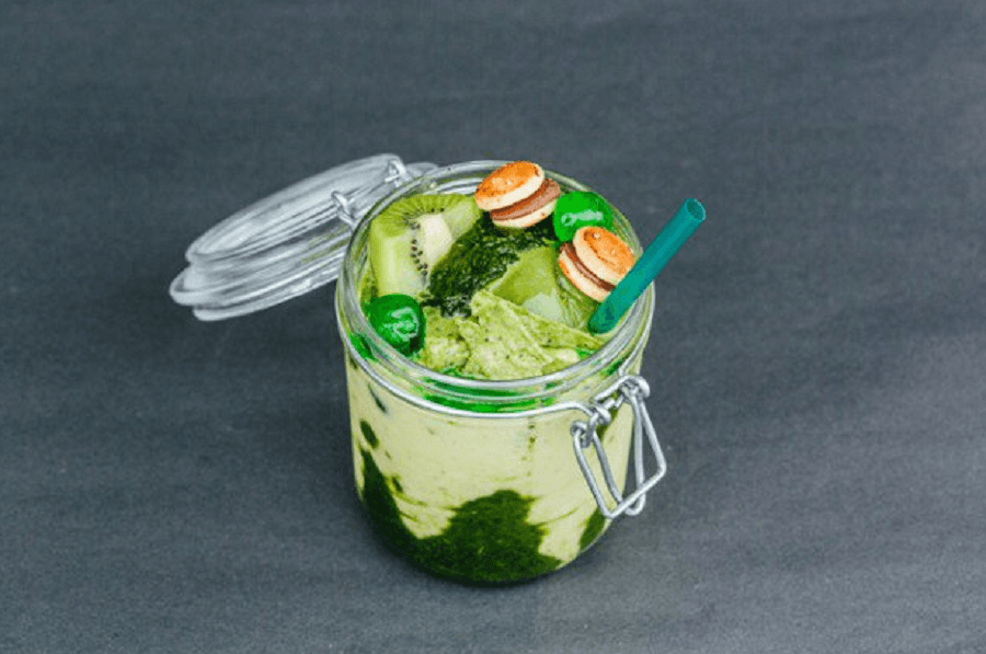 Así mismo, el menú lo complementan un batido verde, que sinceramente no se ve muy apetitoso pese a que está hecho con kiwi, y unos nachos con aderezos bastante particulares.