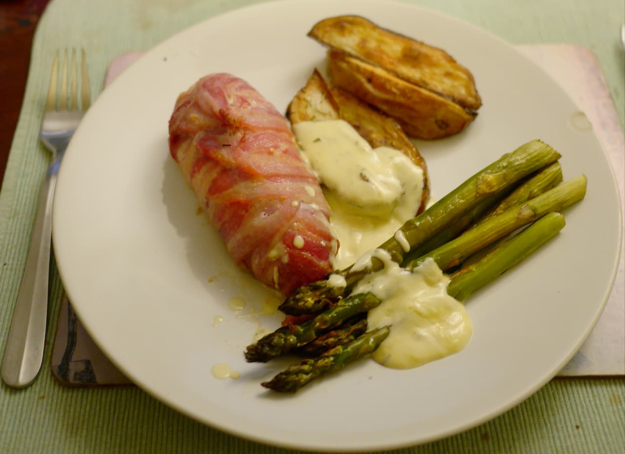 #3 Pollo relleno de guacamole y envuelto en tocino
