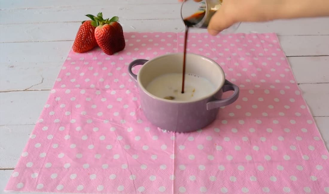 3. Por separado, mezcla la leche con la vainilla y ponla a fuego medio por un par de minutos o hasta que esté bien caliente.