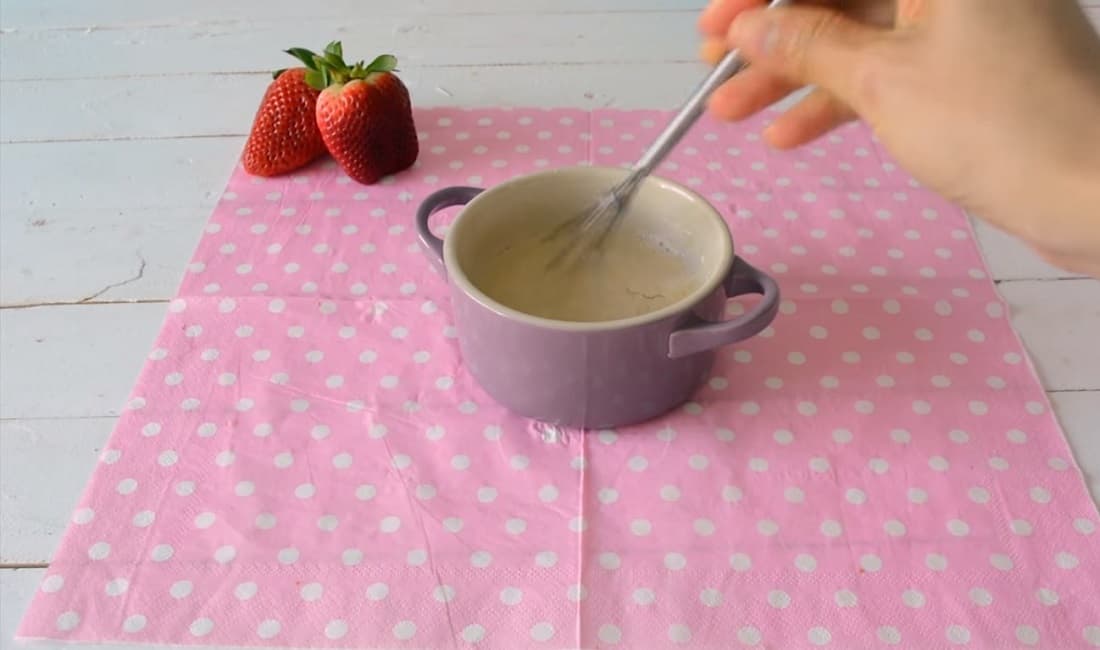 4. Vierte la gelatina en la mezcla de leche caliente y disuelve completamente.