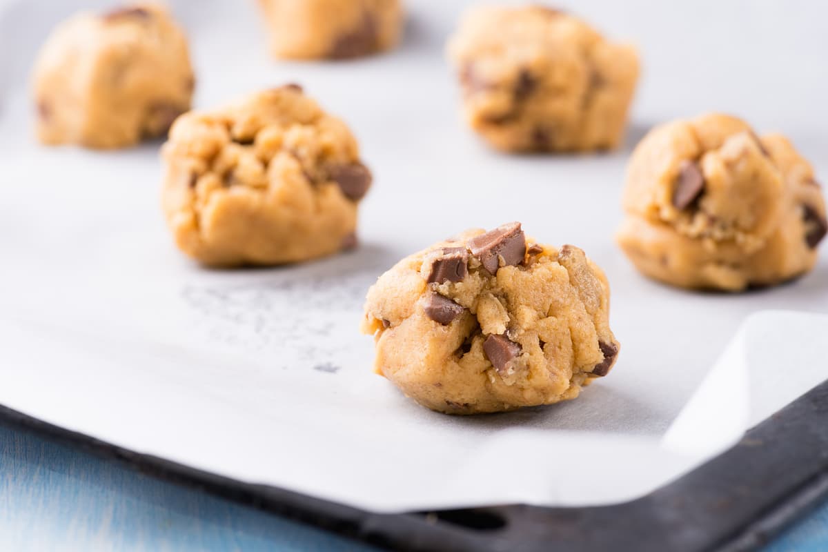 5. Usa una cuchara y forma bolitas de masa. Colócalas en la bandeja, pero no las aplastes; procura dejar suficiente espacio entre cada una.