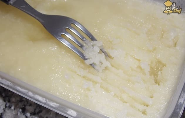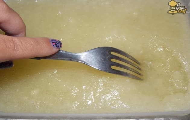 Pasados los treinta minutos, retirar del freezer y con un tenedor comenzar a raspar la preparación. Al principio notarás que al no estar completamente congelado algunos sectores se encuentren líquidos.