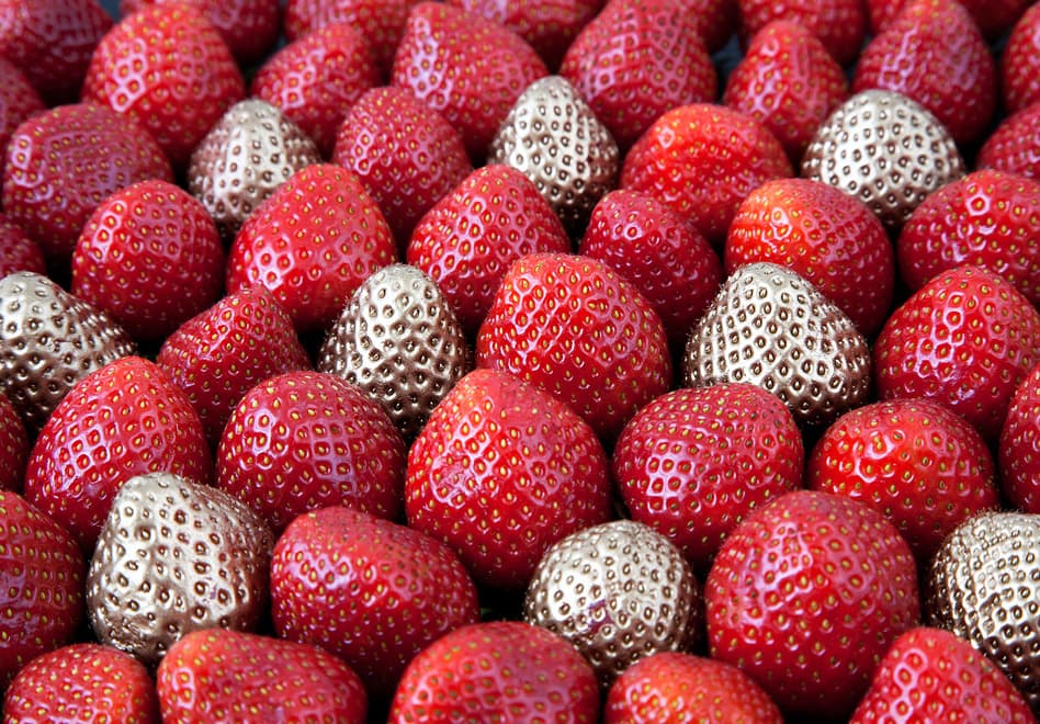 Hace tiempo existen en el mercado unos marcadores de tinta comestible para decorar las preparaciones, pero algo que nunca antes habíamos visto es esta pintura en aerosol para comida. ¿Imaginas disfrutar las fresas de siempre pero doradas? ¡Cuánto glamour! Así es como las disfrutan las verdaderas divas.