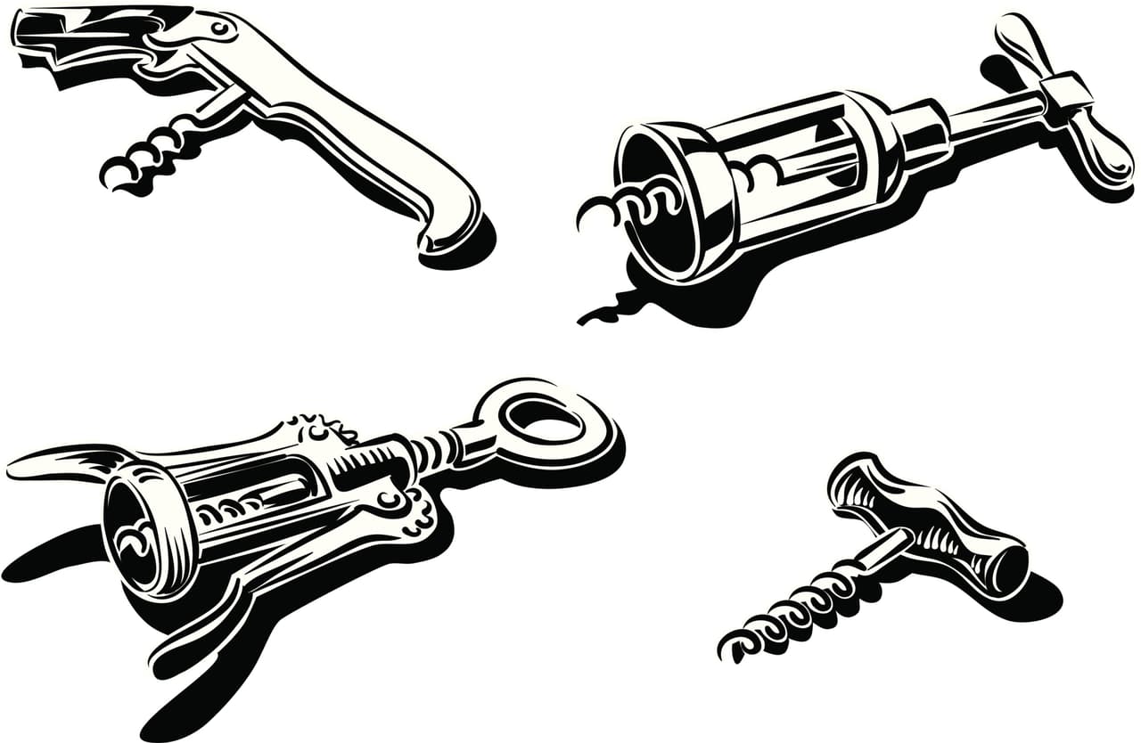 Los hay de hélice o T, de doble palanca, de impulso, screwpulls, de pared, de cava o champagne, de láminas, de tenazas, en fin, son muchos, veamos algunos de ellos:
