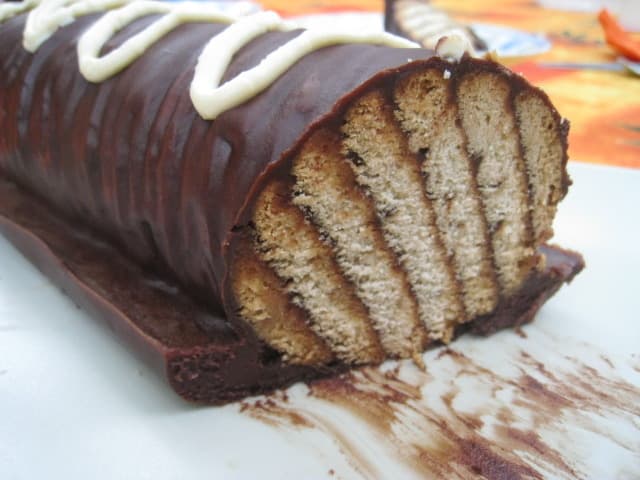 Mmm... ¡qué bien se ve! Y lo mejor es que la preparación es muy sencilla. Solo mezclas chocolate y manteca, lo derrites y luego lo vuelcas entre capas de galletas María mojadas en leche.