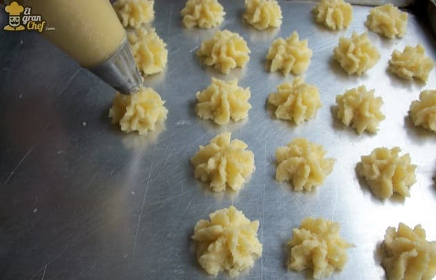 Debemos colocar la mezcla en una manga con un pico grande y rizado. Esto es para que los coquitos tengan la forma tal como la conocemos.