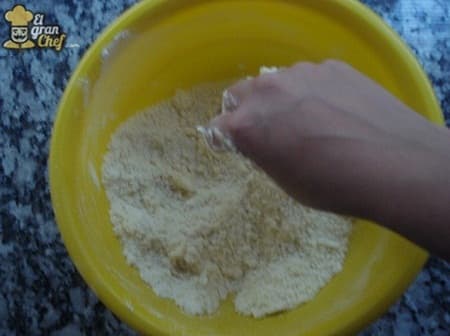 Integra la mantequilla con los ingredientes, elaborando un "arenado".