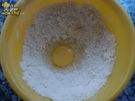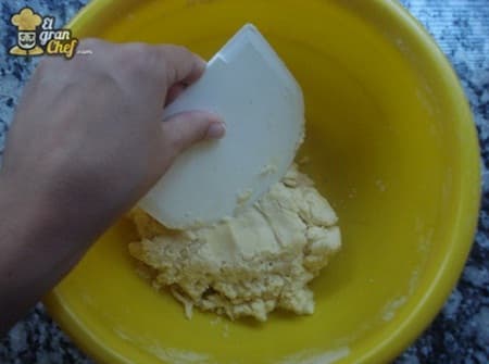 Cuando esté finalizado este paso, en un hueco, añade el huevo y sigue uniendo todos los ingredientes con un cornet hasta formar una masa.